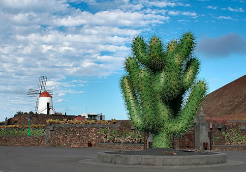 El impacto visual que produce el cromatismo de este lugar es parte de su encanto, que se agudiza al entrar en detalle para ir deleitándose con cada cactus y cada pequeño rincón de esta antigua cantera de ceniza volcánica. César Manrique consigue como nadie sorprender y maravillar de la manera más natural. Su idea de crear un jardín botánico en este inhóspito lugar es ya de por sí un acierto, pero además supo darle una gran personalidad, difícil de olvidar una vez que se ha visitado el Jardin de Cactus. Es la última intervención del artista en el territorio de Lanzarote y un compendio de las pautas estéticas que siguió en sus obras de arte público integradas en el paisaje.
